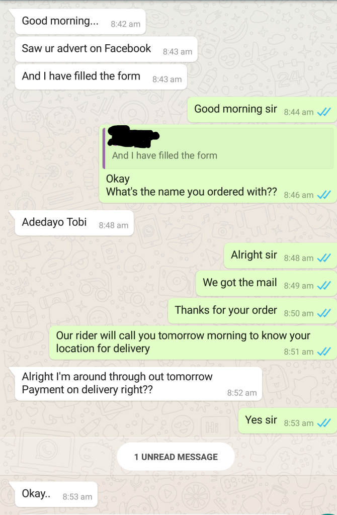We have also been advertising on Facebook & Linda Ikeji’s blog for some time now and I believe we should have been denied that privilege if a previous customer had reported us.